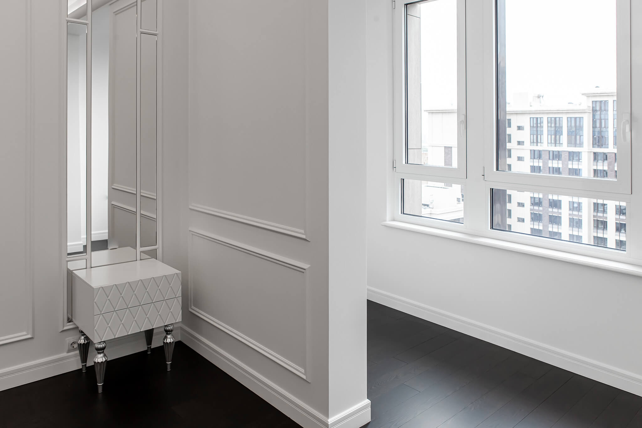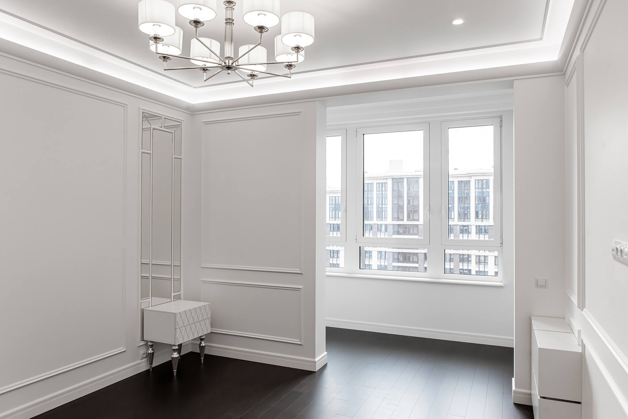 - Стены под окраску с декоративными молдингами