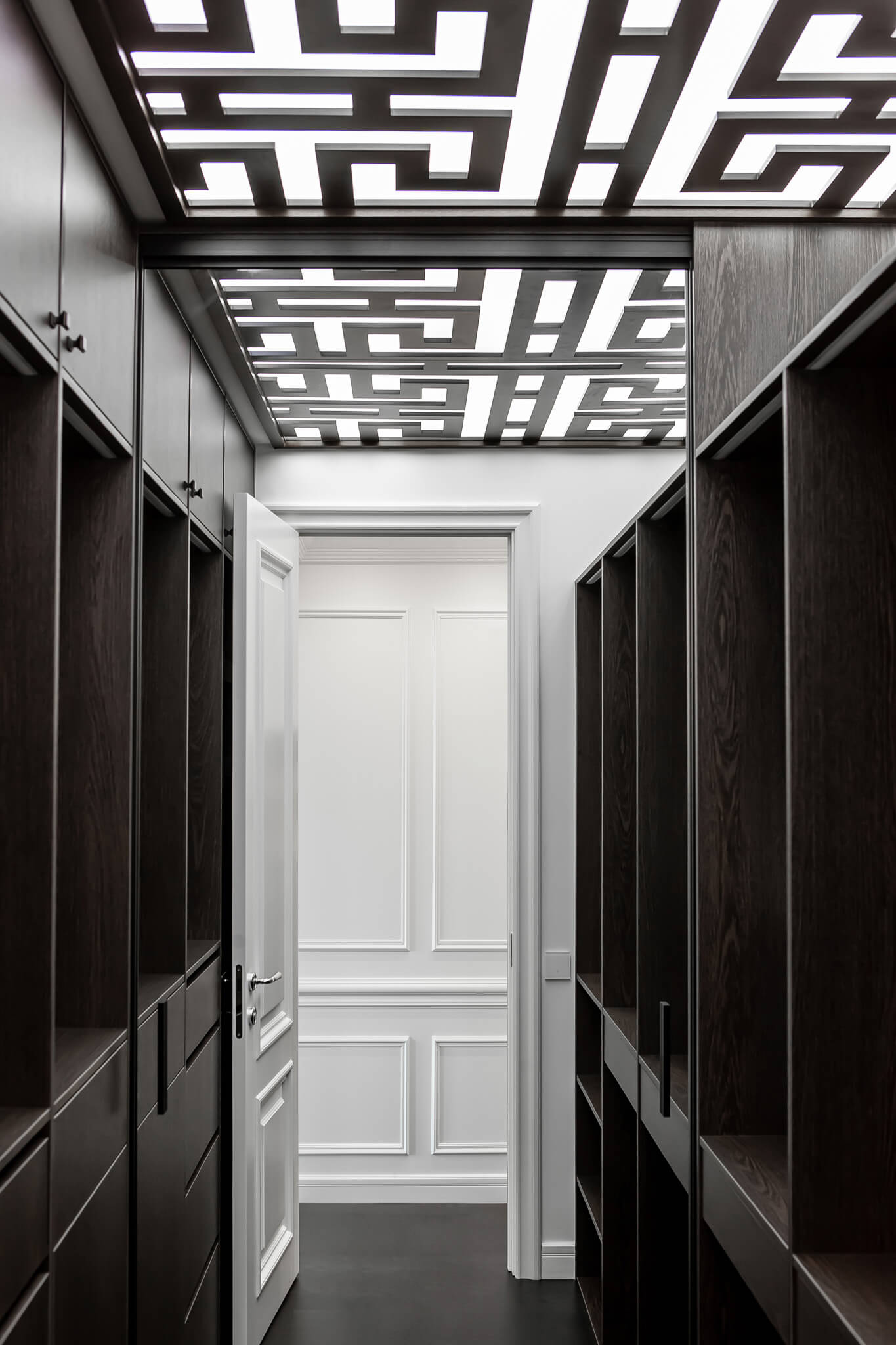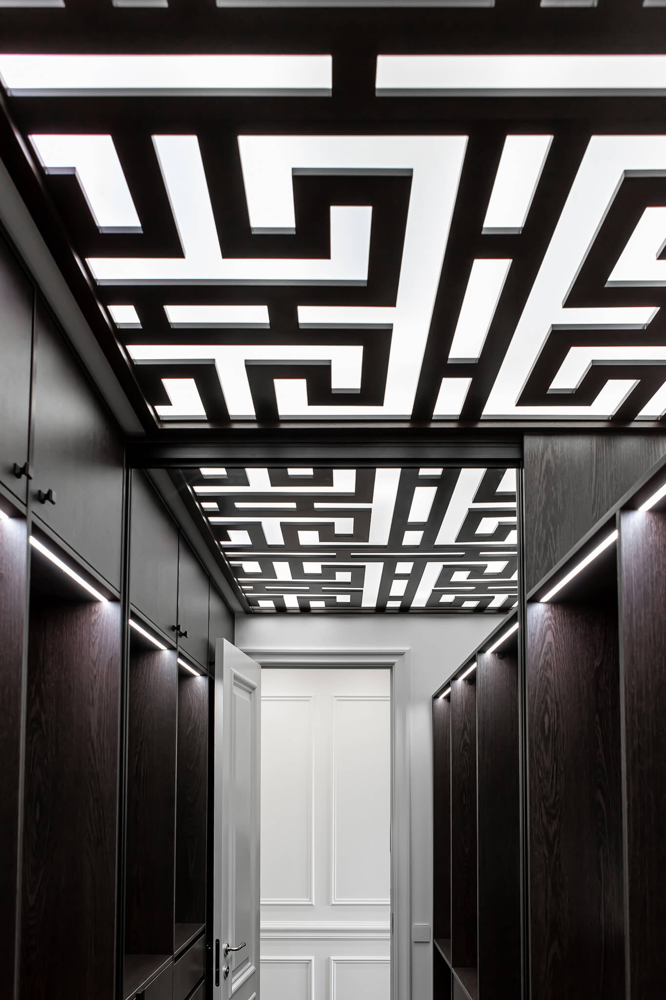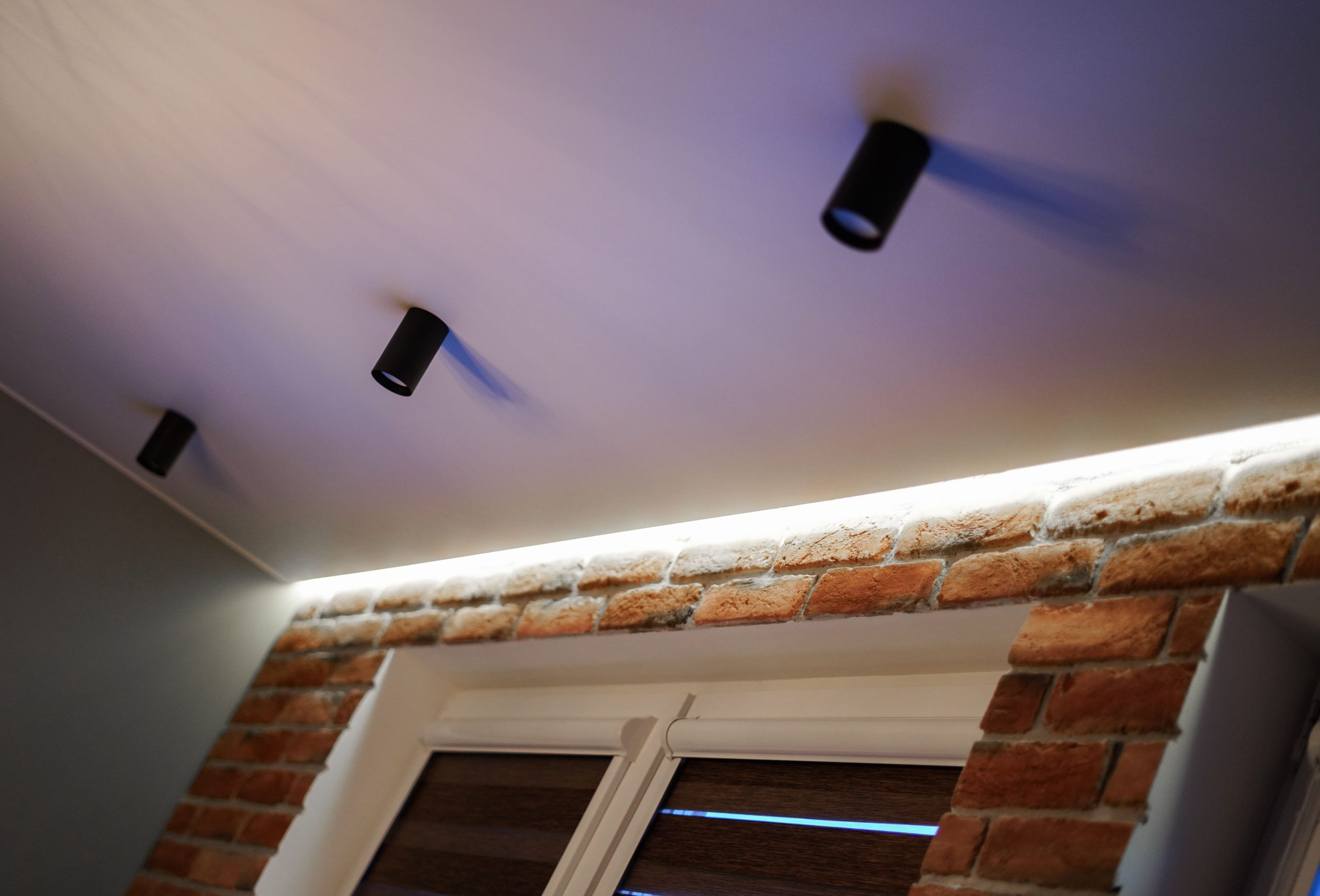 - Потолок натяжной со скрытыми карнизами.